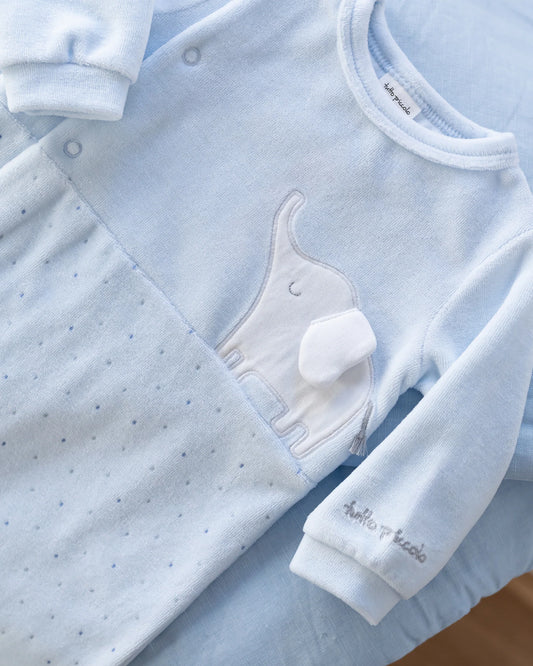 Tutto Piccolo Blue Velour Elephant Baby Grow