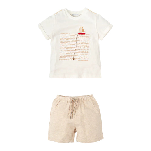 Tutto Piccolo Beige Sail Boat Shorts Set