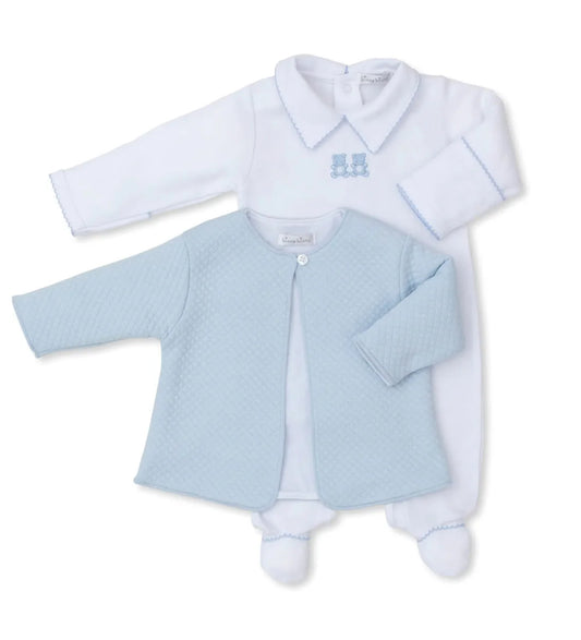 Kissy Kissy Blue Smocked 2pc Babygrow & Hat