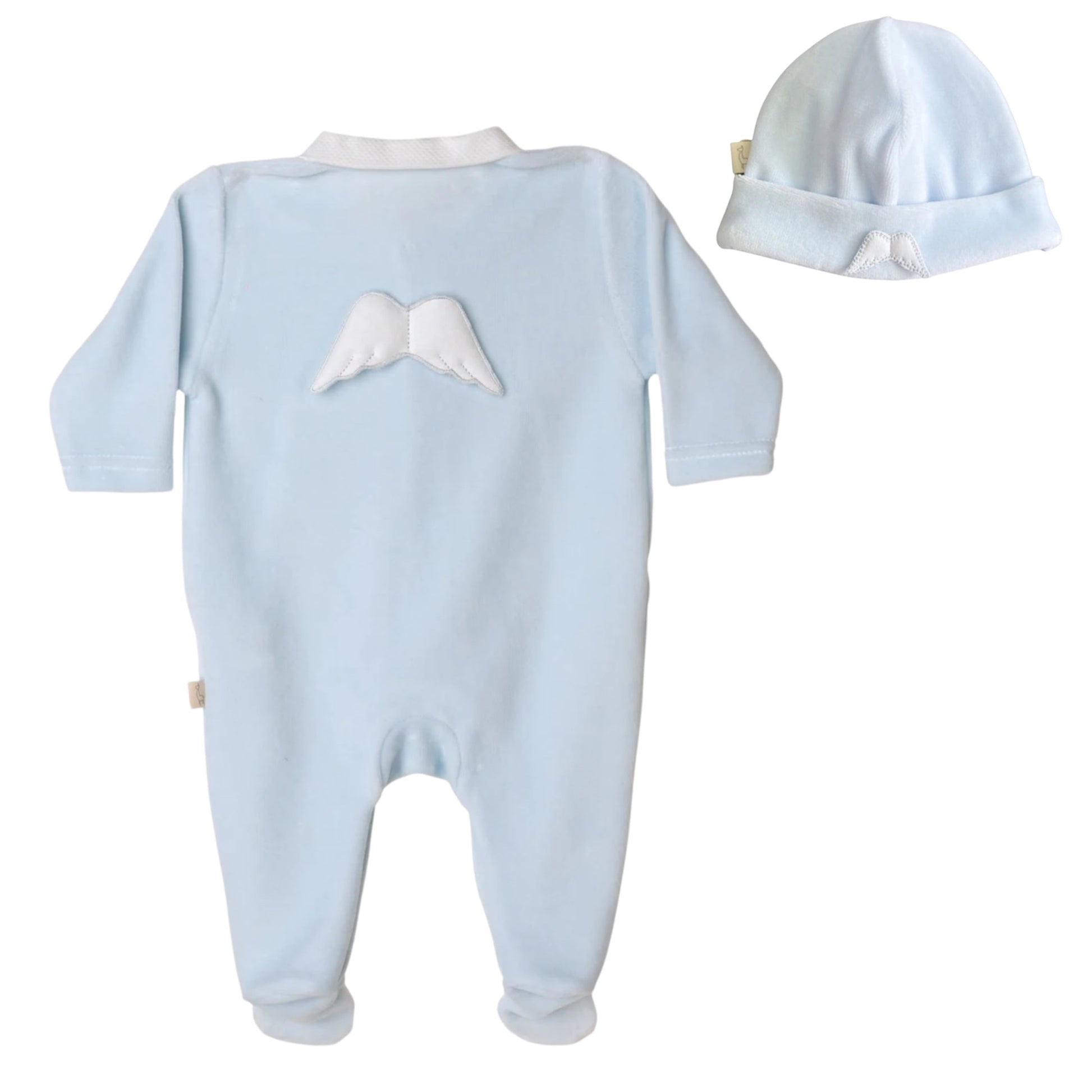 Baby Gi Blue Velour Wings 2pc Babygrow & Hat