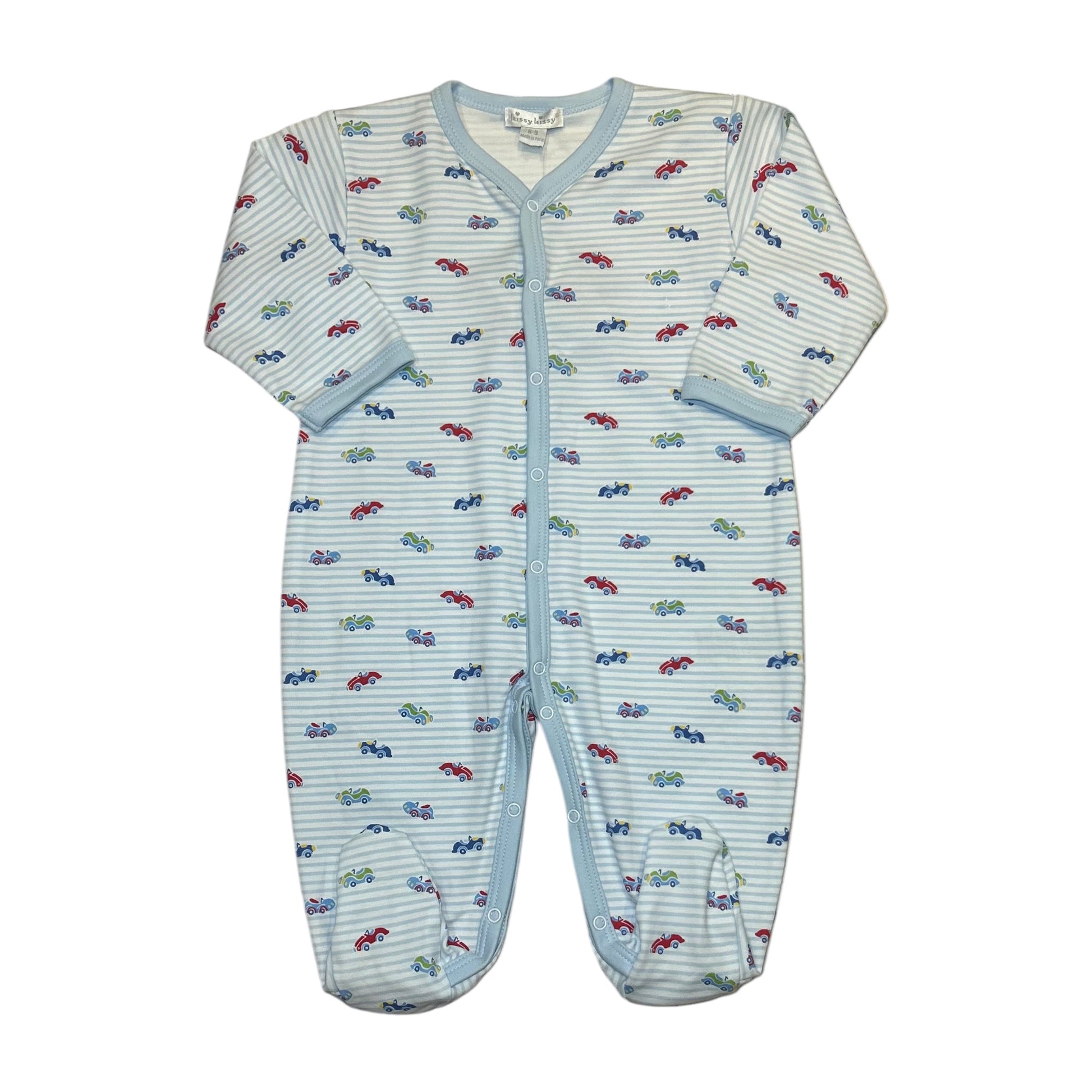 Kissy Kissy, 100% Pima Cotton blue and white striped babygrow. Completed with printed cars decoration.