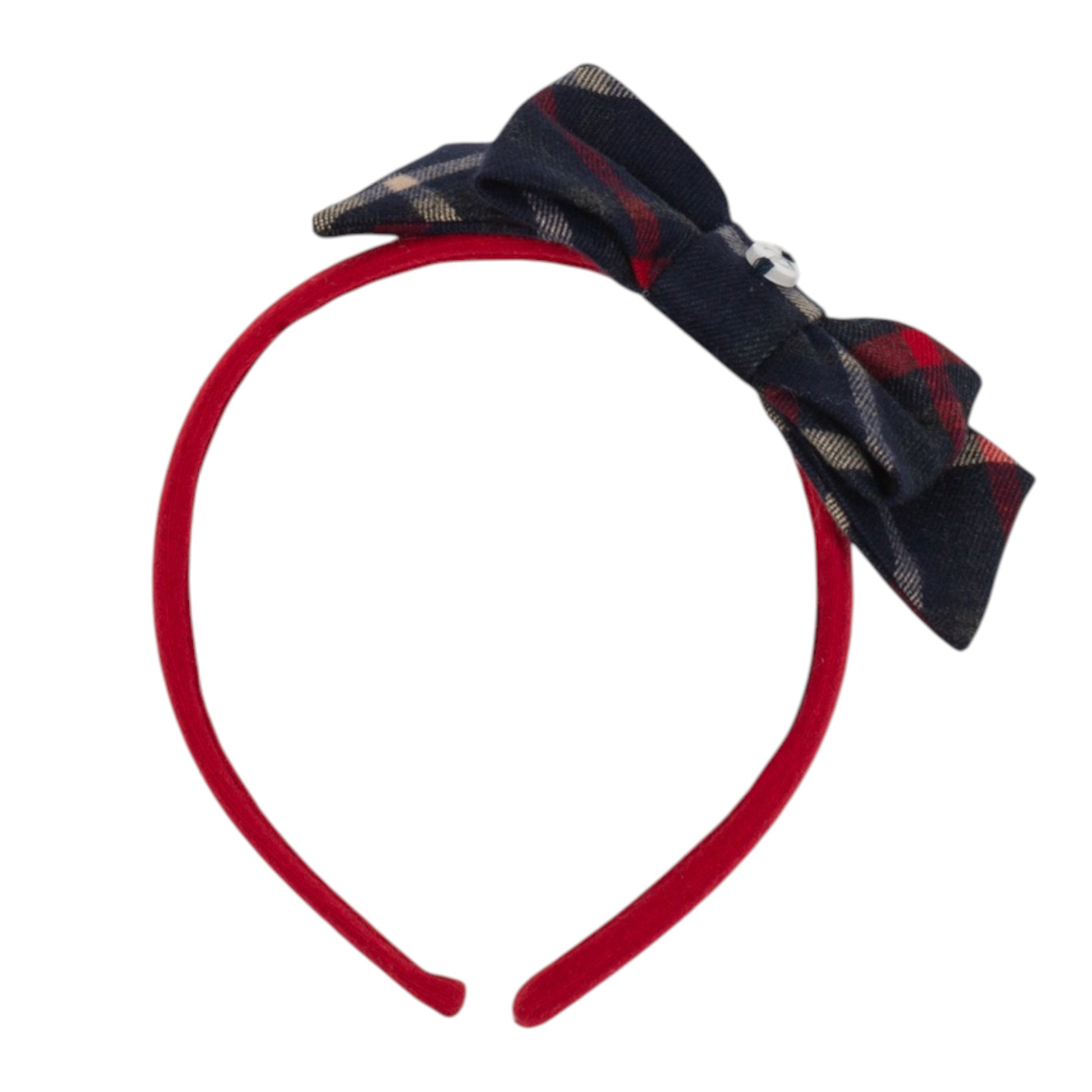 Patachou, Autumn/Winter 2025 collection. Read headband with tartan bow decoration. Perfect to complete all your tartan outfits this season.
