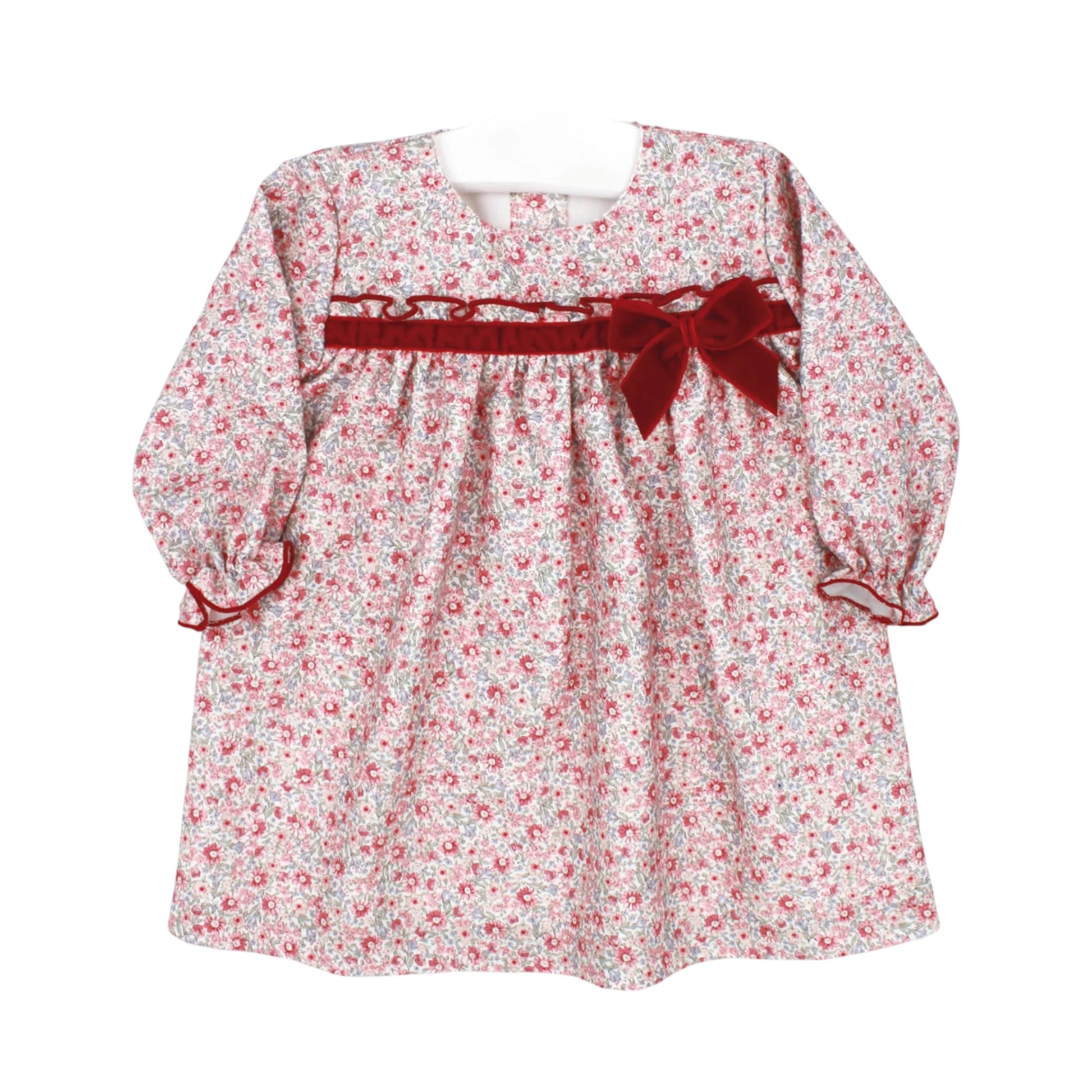 Rapife Autumn/Winter 2025 collection. Liberty inspired red dress with red velvet bow decoration.